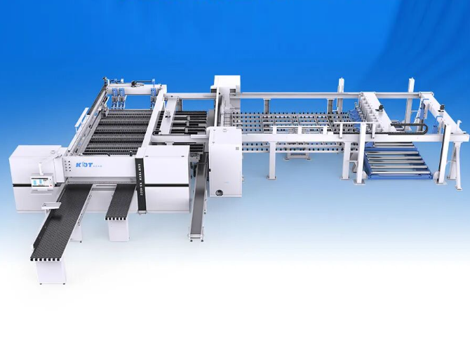 极东机械纵横数控锯切中心 KS-4522HLS,一台机相当于2台普通裁板锯,应用于各种大型板材的加工和裁切,纵锯实现4300mm的大板加工,横锯实现2100mm的加工,纵锯、横锯可同时加工,能耗小、省薪省事,节省厂地面积,满足不同类型家具企业的生产开料需求
